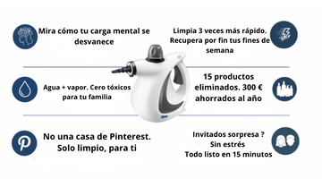 VaporMaster 3x veces más rápido. 15 productos eliminados. Solo agua. Tus fines de semana recuperados.